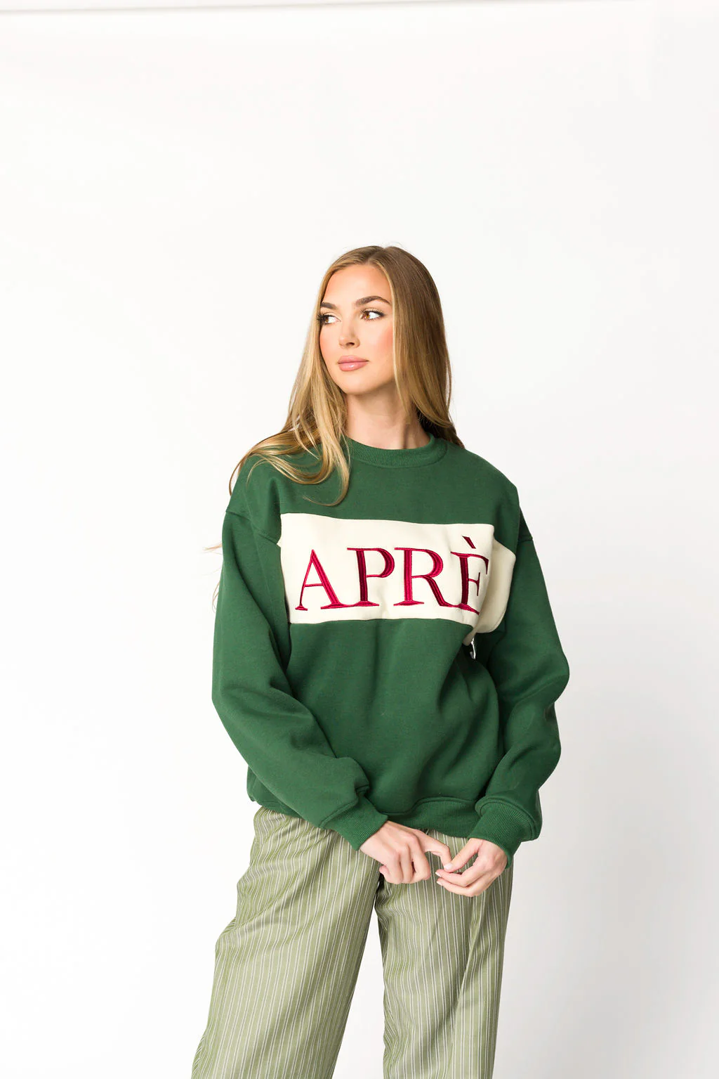 Après Colorblocked Crewneck in Pine Green *Final Sale*