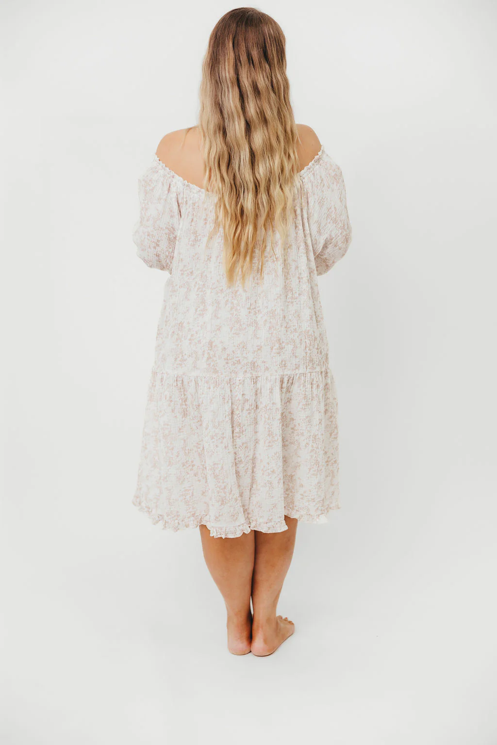 GARMENT DETAILS: Lightweight, relaxed cotton house dress. Neckline can be worn on or off the shoulder.
